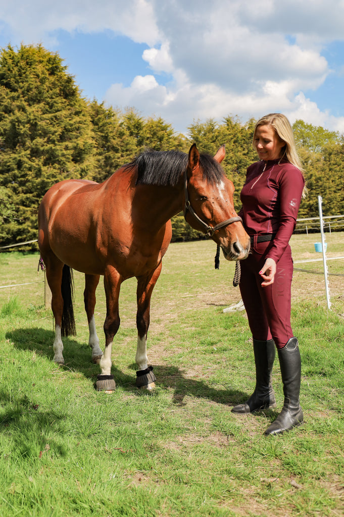 Get ready to ride in style with our exclusive Burgundy Equestrian Leggings and Matching Baselayer – now available as a perfect pair!