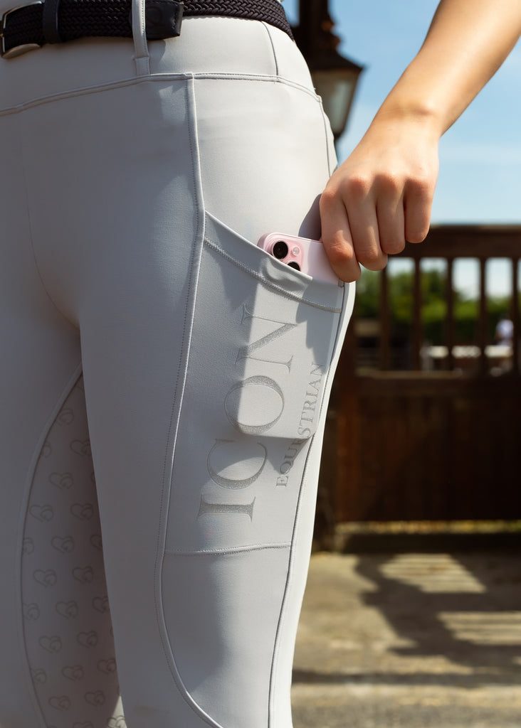 Extremely fashionable riding leggings which feature our high waistband and full seat silicone grip with our unique pattern to keep you secure in the saddle.